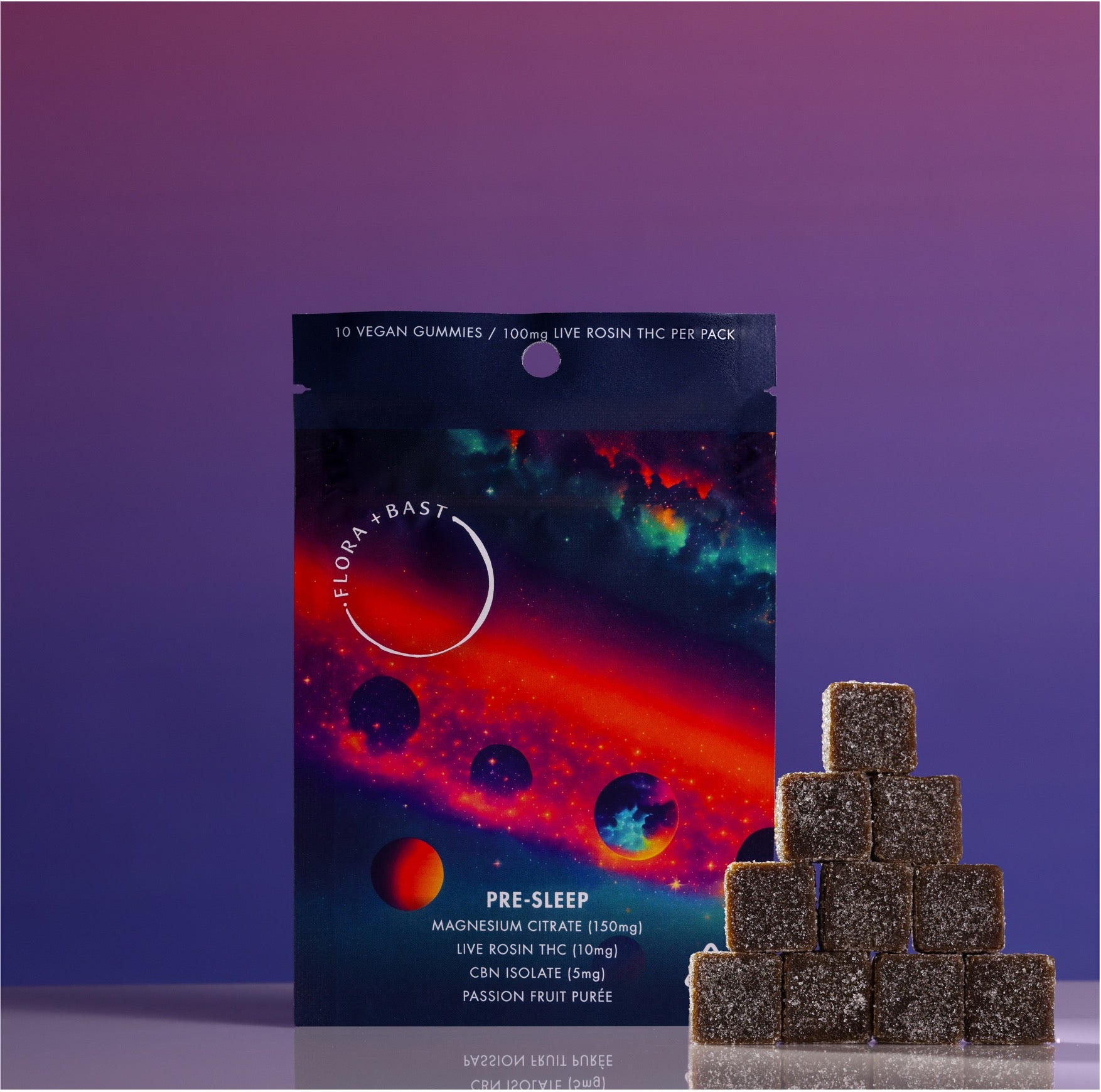 BENEFITS: Our PRE-SLEEP gummies are designed to encourage an enjoyable cannabis experience and promote better sleep hygiene. Our Passion Fruit purée gummies contain Live Rosin, CBN, and Magnesium to induce euphoria, deep relaxation, andrestful sleep.These effects may begin within 45 minutes of consumption and lead to intensedrowsiness within 4 hours, on the descent of the cannabis high.The added combination of CBN,known as the “sleep” cannabinoid, and Magnesium, a mineral most people are deficient in, enhance the desire to sleep.This productis crafted for those who experience symptoms of insomniaand wish to find a peaceful night’s sleep.